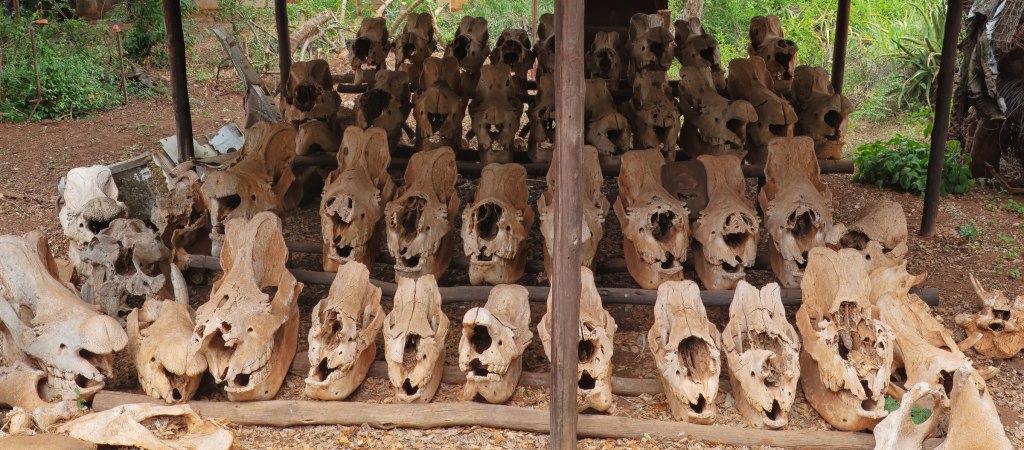 Poached rhino skulls, Mykhaya Game Reserve, Eswatini 2019