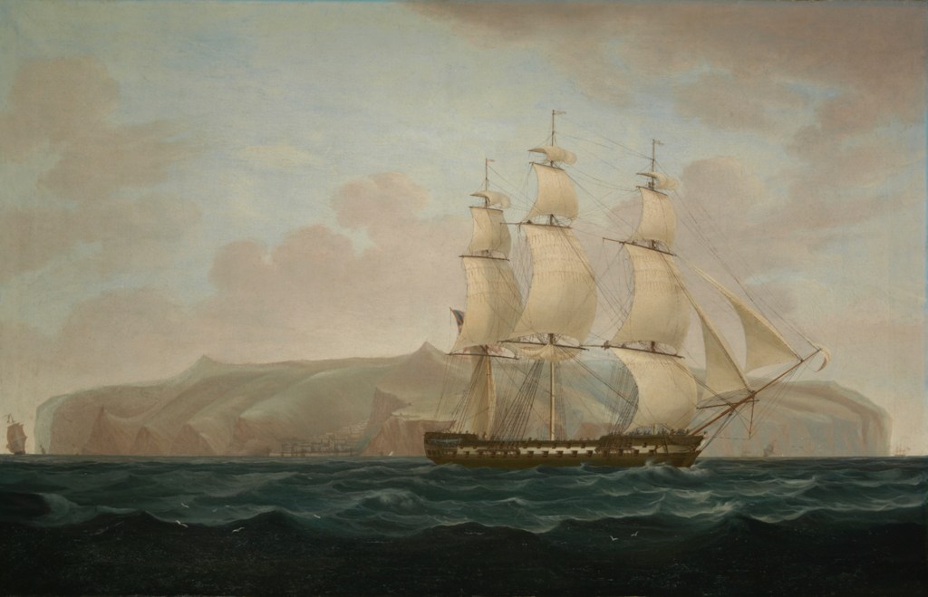 In 1815 St. Helena became the island prison for the former Emperor of France and the Cape Station moved there under the command of Rear-Admiral George Cockburn, with his flagship Northumberland, two frigates, six sloops and a troopship. The squadron’s “first and most important” role, which kept it here for the next six years was to guard St. Helena and Napoleon. As St Helena lies 1,000 miles south-west of Africa this inhibited the squadron’s anti-slavery activity on the east coast of Africa and in the Indian Ocean.