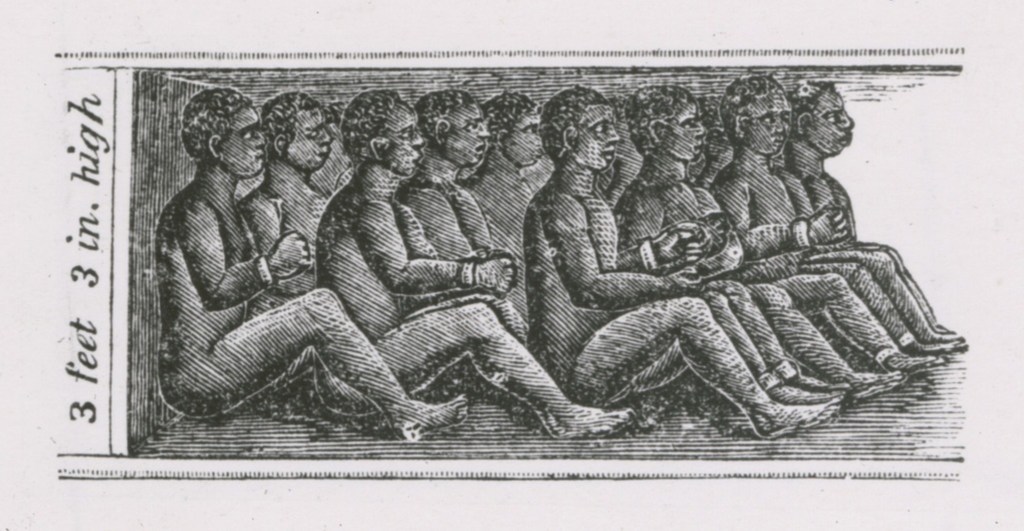 To put this in perspective; the two decks of a London Routemaster bus has about the same floor space as Progresso‘s slave-deck’s but the deck’s ceiling height would only allow a four-year-old male child to stand upright, the enslaved men and women had no room to lie down and could only sit.