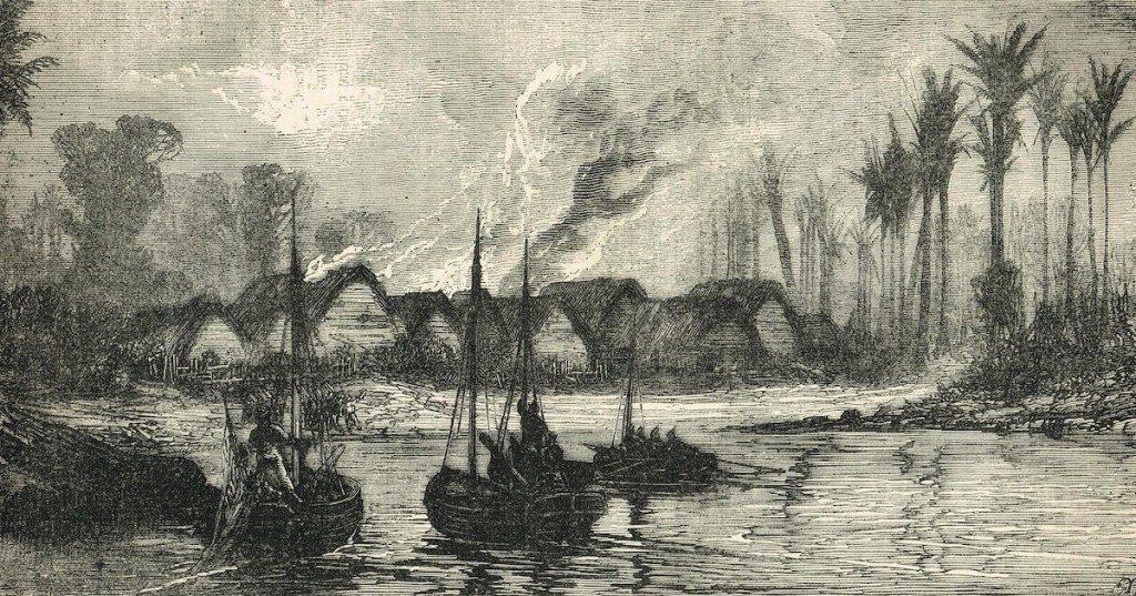 At night the boats were covered with awnings that were laced to the sides to protect the crew from malaria; fourteen men, livestock and the heat and humidity of a tropical coast must have made for interesting nights.
