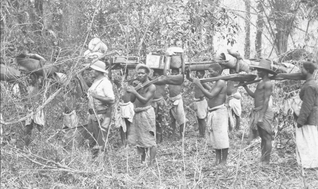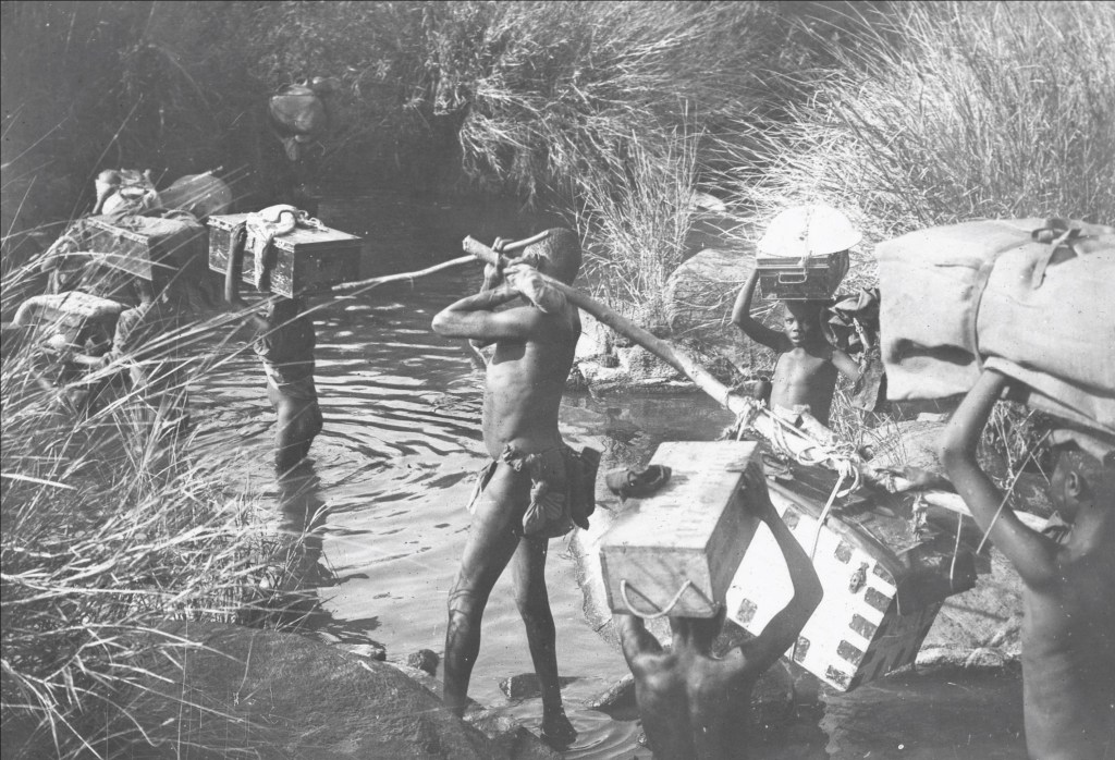 In a land where horses and pack animals had little or no resistance to the diseases carried by the tsetse fly the Africans carried everything except the clothes the white man stood up in. They acted as language and cultural interpreters and increasingly as caravan leaders, guides, quartermasters and section leaders, they negotiated for food and shelter, cooked his meals, prepared the camp, gathered firewood, collected water, stood watch at night and taught him which fruits were edible and which plants could be used as medicines.