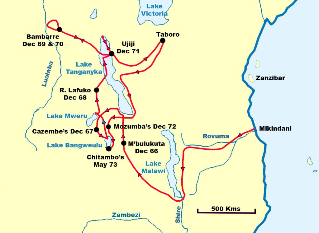 Chuma, Susi, Amoda and Gardner have been with him, on this expedition, since he collected them from Bombay in 1865 and have been floundering in the swamps around Bangweulu for the last four months, often carrying their master. They are now 2,250 kilometres for the coast if they travel back via Unyanyembe (Tabora). They had travelled across central Africa for six long years and knew what covering such distances entailed.