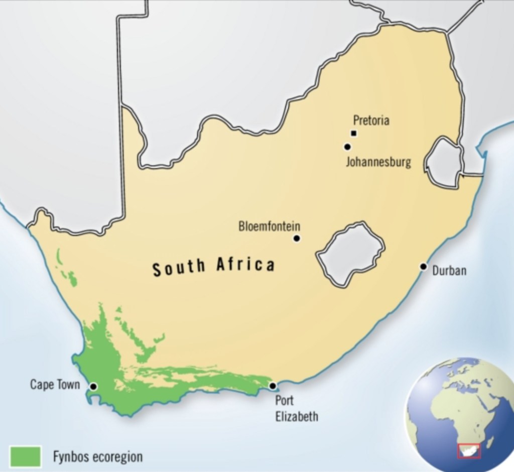The Fynbos covers 85,000 km2, which sounds a lot but represents less that 7% of the Republic of South Africa and 0.3% of the African continent as a whole, Yet it is home to 9,600 plant species of which nearly 70% occur nowhere else on Earth.