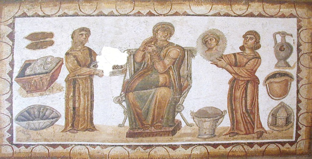 Slaves waiting on their mistress in a mosaic from Sidi Ghrib in Tunisia 6