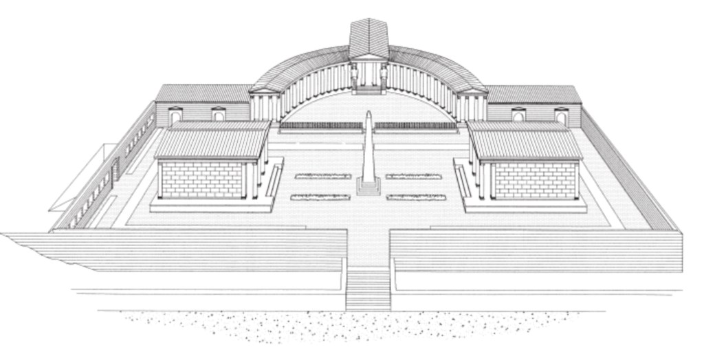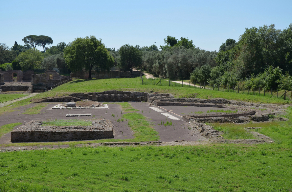 Top: Remains of the Antinoeion, the temple of Antinous at Hadrian’s villa at Tivoli