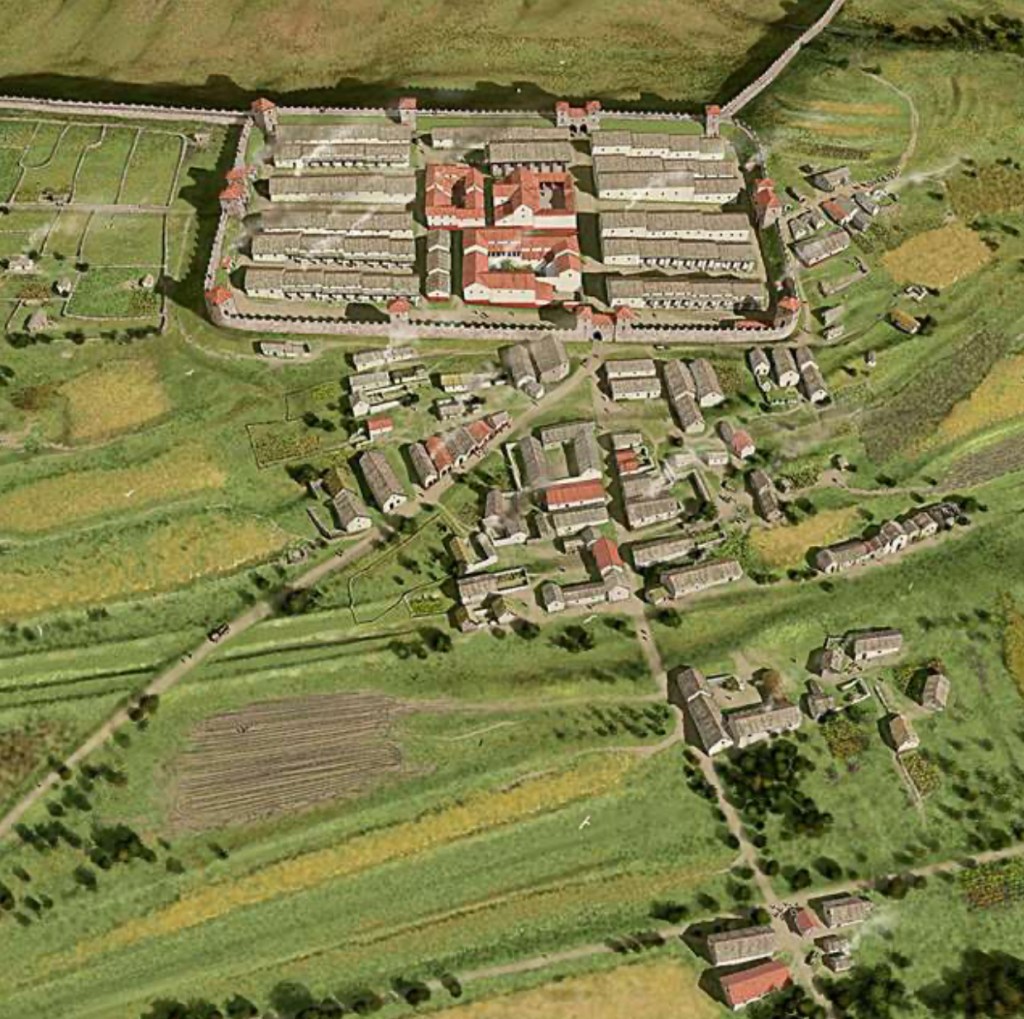 An artist’s impression of the Roman fort and vicus at Housesteads on Hadrian’s Wall in northern Britain. 108